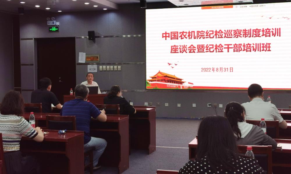 为持续深化“制度建设年”专项行动,结合国机集团党委制度系列学习培训、宣传解读的部署安排及公司纪委年度工作计划和制度宣贯相关安排,同时进一步提升公司纪检干部专业能力,落实政治过硬、本领高强的要求,深化纪检干部队伍建设,2022年8月31日中国农机院举办了纪检巡察制度培训座谈会暨纪检干部培训班。公司纪委委员,纪委办、巡察办工作人员,在京二级单位纪检巡察相关工作分管领导、纪委书记、纪检委员、纪检部门负责人及相关业务骨干参加了现场会议。公司所属各京外二级单位相关人员通过视频方式参会。